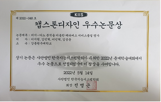 한국지능시스템학회 캡스톤디자인 우수논문상」 수상