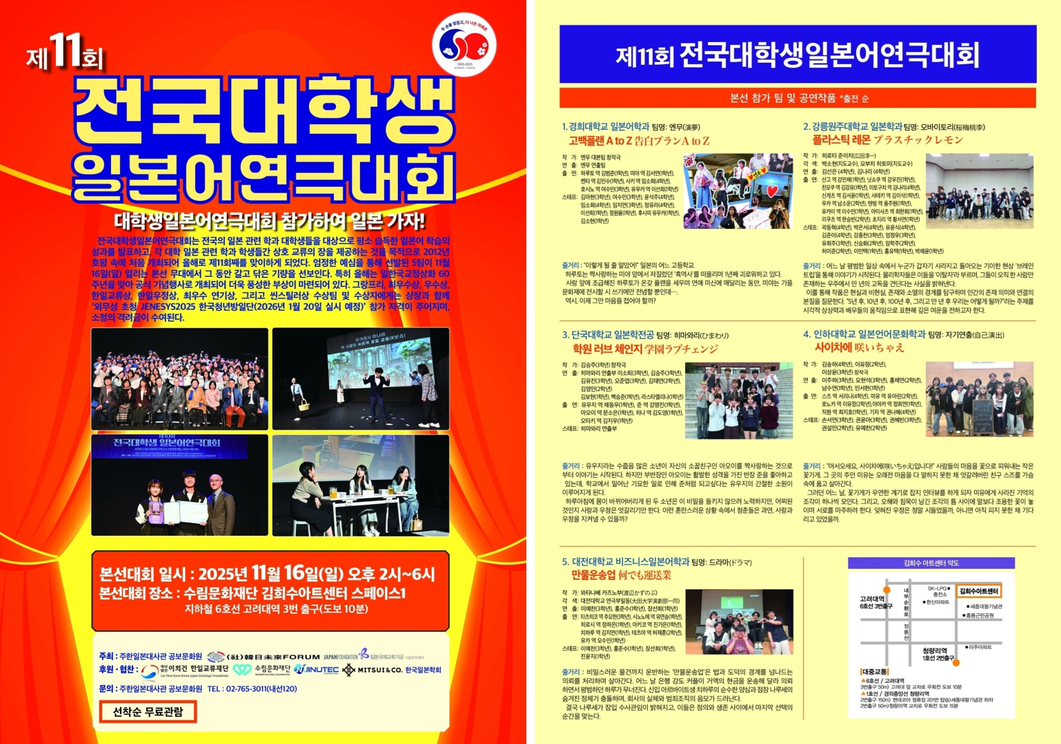 최한 <제11회 전국 대학생 일본어 연극대회> 본선(2025 11 16)